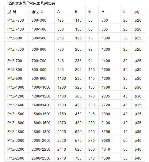 1、鑲銅鑄鐵方閘門由門框、閘板、導軌、密封條、驅動螺桿、提升螺母/吊架和可調密封機構組成。門框和閘門采用優質灰鑄鐵或球墨鑄鐵制造。導軌采用不銹鋼螺栓定位銷和門框兩側對稱布置。中小型閘門,其導軌可與車門框架澆注。導軌長度一般為閘門全開高度的1/2~1/3,整體結構強度高、剛度高、耐磨性好、耐蝕性好、承壓能力高。