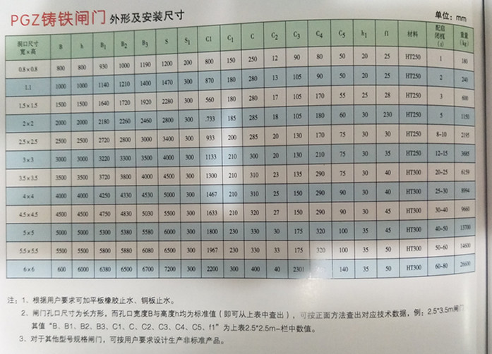 鑄鐵閘門的尺寸與安裝