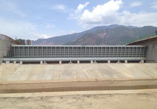 3、液壓升降壩水力條件優(yōu)越。該壩可基本保持原河床,可暢泄洪水、上游堆積泥沙、卵石和漂浮物而不阻水。與傳統(tǒng)水閘及類似的橡膠壩相比,過流能力大,泄流量大。特別適用于橡膠壩不宜建造的多砂、多石、多樹、多竹和寒冷地區(qū)的河流。還可以做到任意調(diào)節(jié)壩高溢流,可控制上游水位和泄流量。
